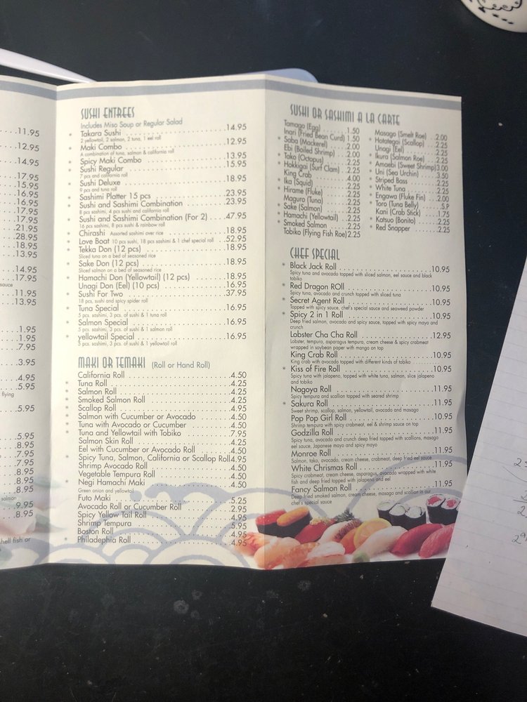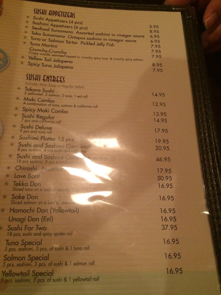Takara Japanese Steakhouse and Sushi Bar Menu